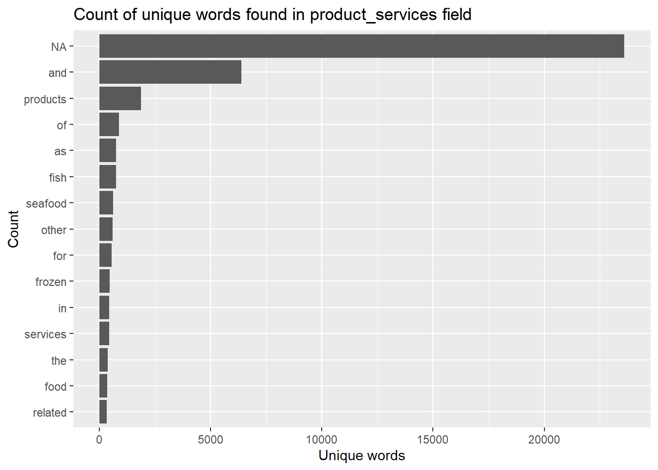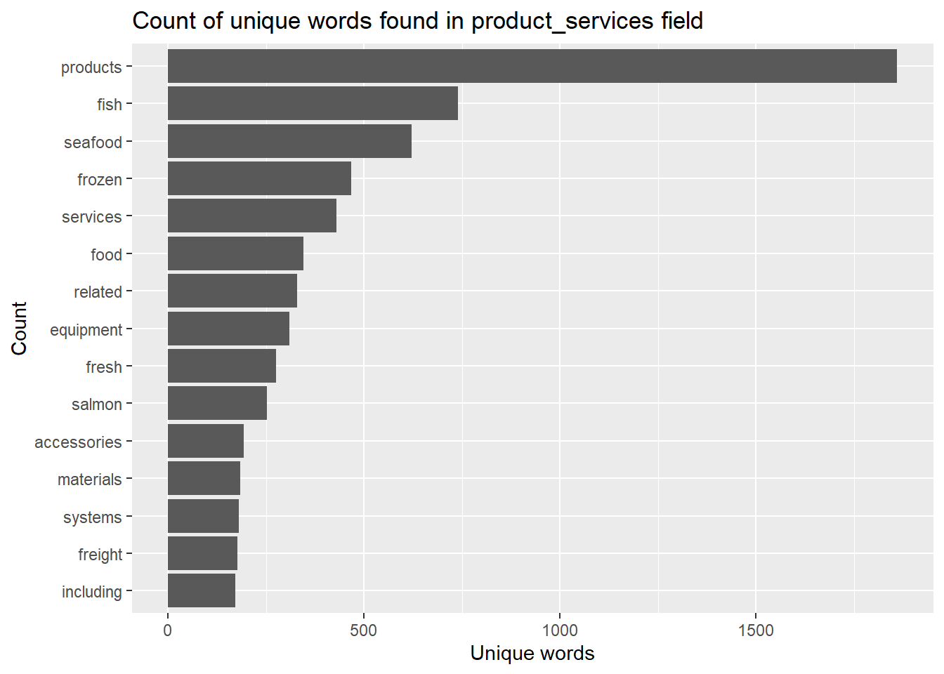 title = "Count of unique words found in product_services field")
